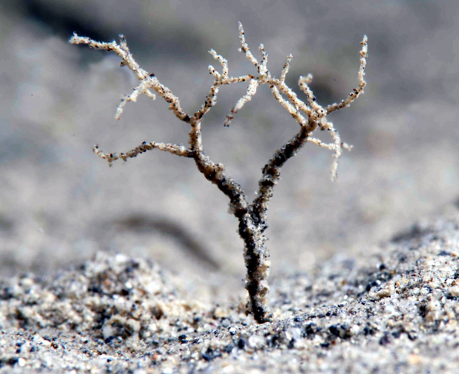 They are known as tree foraminifera, primordial single-celled organisms. They branch out in the shape of trees. The branches give off pseudopodia, microscopic false feet that gather and assemble grains of sand